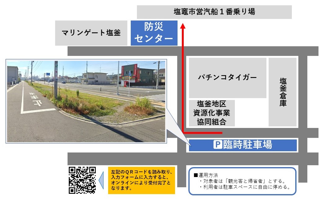 浦戸諸島|宮城県塩竈市【公式】 ホーム 新着情報一覧 新着情報 浦戸観光客・帰省客用無料駐車場を開設します。浦戸を訪れる観光客や帰省される方のために、期間限定で無料駐車場を開設いたします。・開設期間 令和7年12月27日(土)~ 令和8年1月4日(日) ・場所と台数 パチンコタイガー塩釜店向い 28台分・受付方法 利用者はQRコードから申込 予約はコチラからも行うことができます。⇨予約フォーム