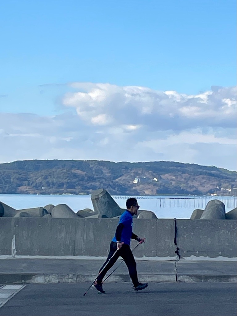 雪がほとんど積もらない浦戸諸島だからこそ、冬場でも絶好のノルディックウォーキングコースとなります。